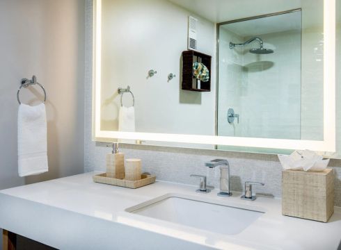 This room is located at the top floors of the hotel offering expansive and unobstructed views and a private standing balcony.